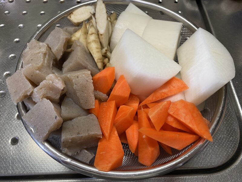 豚薄切り肉、にんじん、ごぼう、大根、こんにゃく