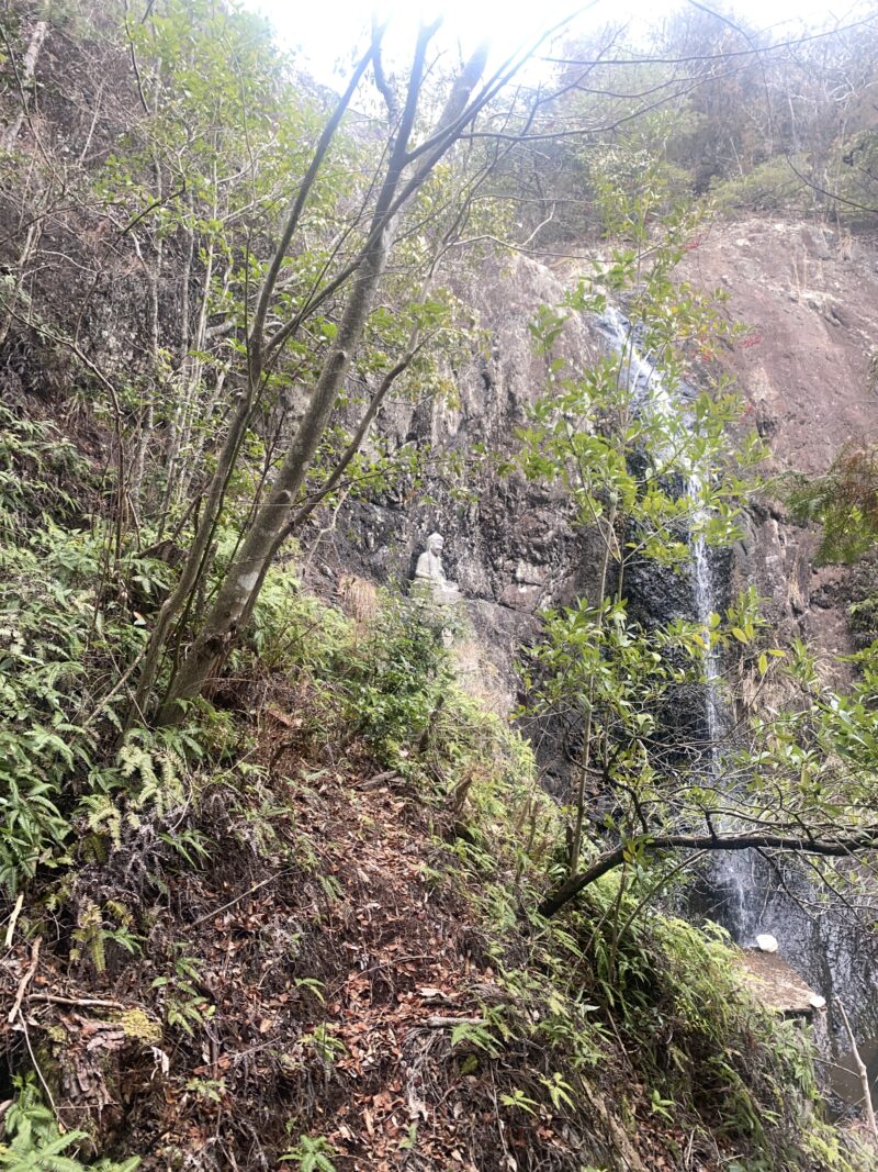 滝の左側の岩場には不動明王が祀られています