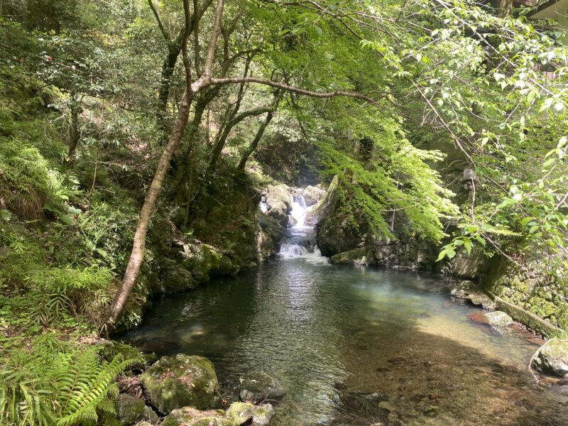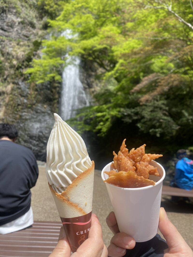 滝つぼの前に大きなベンチがいつくもあって、滝の音をま直に鳥のせせらぎなど自然のBGMに癒せれながら、名物「もみじ天ぷら」を食べるなんて贅沢な時間を過ごしました。