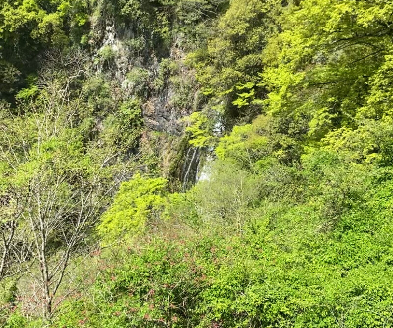 途中、水音が聞こえて来て見下ろすと新緑の切れ間からチラッと姿を垣間見れます。