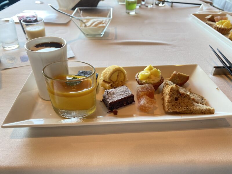 かぼちゃの冷製スープやペンネなどの軽食や紅茶のシフォンケーキやバスクチーズケーキなどデザートもたくさんあり、どれも美味しくてお腹もいっぱい大満足でした!