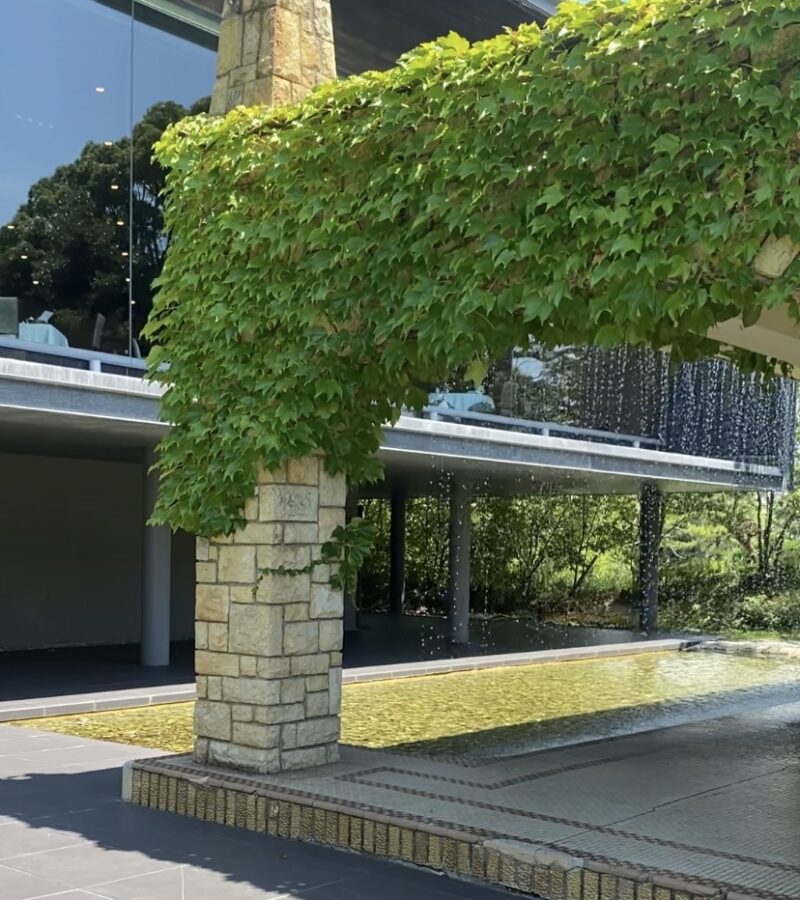 しかし、以前のプールの飛び込み台の上部に水盤を設け、滝と池を作ることで屋外プールの存在を残しているのだそうです。