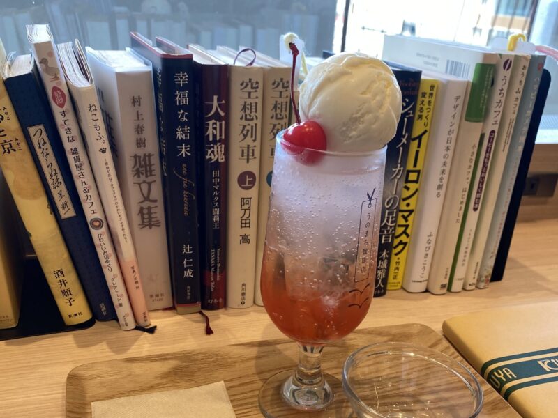 いつもならコーヒーを注文するところだけど、アイスに惹かれてクリームソーダを飲みながら…。