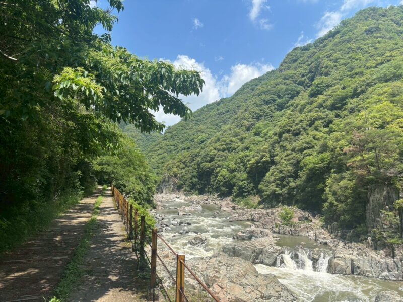 横を流れる武庫川のせせらぎをBGMに山の中、枕木を進む…