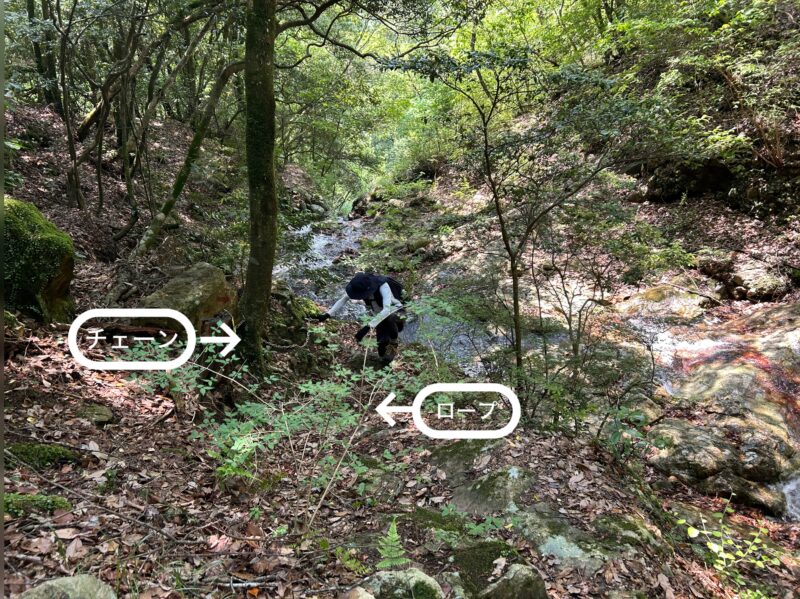一番の難関!チェーンとロープを伝って登ります。