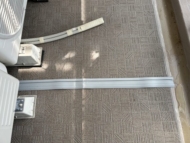 これならエアコンのホースも邪魔にならないし、見た目もスッキリするし、排水でベランダのタイルマットが傷むこともない!