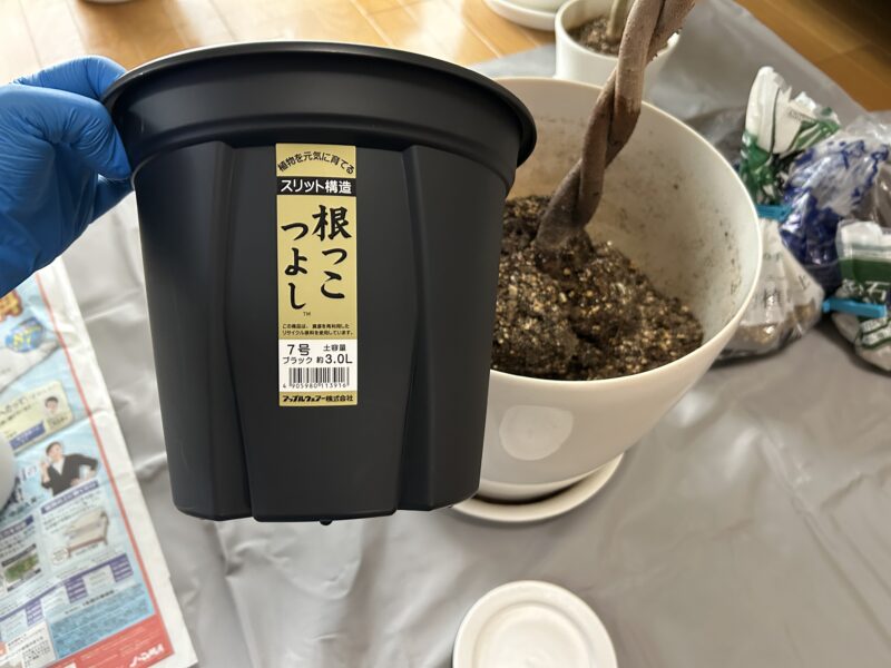 通気性の良い根っこを強化させる植木鉢を買ってきて、植え替えることにした