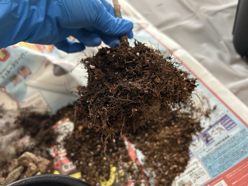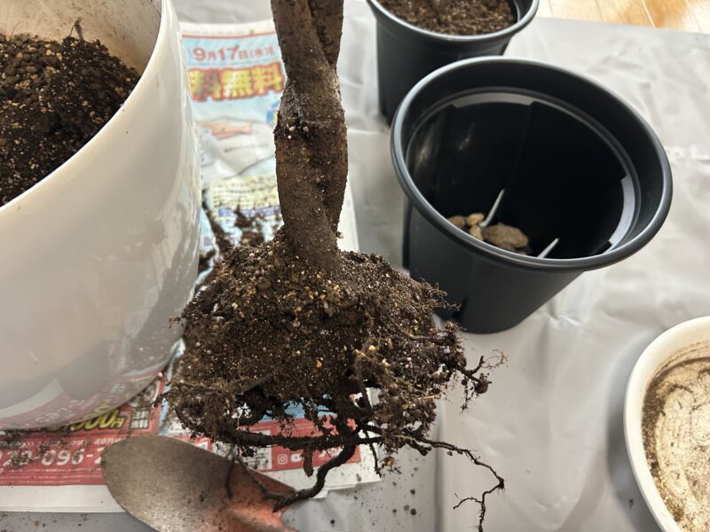 ついでにウンベラータをみると、根っこはちゃんと張ってくれていたので、鉢まわりの土を軽く取って空気を含ませて新しい土を入れました