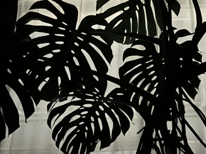 我が家のシンボルのモンステラが月あかりに浮かび上がってる