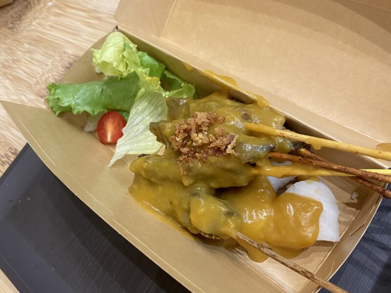 そのかわり、「サテ パダン」という牛肉の串焼きにカレー風味のソースがかかったものを食べました♡