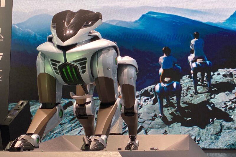 KAWASAKIの作る四足歩行のロボットは、かつての人々が馬で野山を走り回ったようにどんなところにも行ける、アトラクションのような乗り物でした