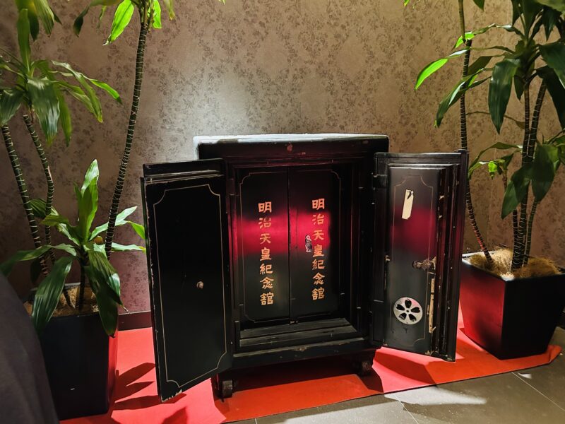 明治時代の面影を残す金庫で戦後から金庫の上のホコリを取り除くことも禁止されているほど歴史的価値のある金庫なんです!