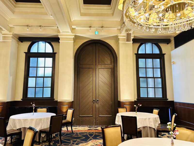 婚礼の時に新郎新婦さんの入場などであけられるとのことなんですが、一般の人には開けることを許されていない特別なドアで、ここの係の人しか開閉できないドアなんです!
