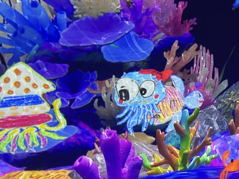 自分の描いた絵が壁面の海の中を泳ぎまわってウインクしたり、ポヨンポヨン動いてほんと可愛かったです♪