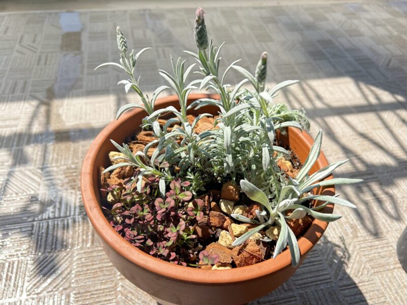 寄せ植えにした組み合わせ|ラベンダー×クローバー